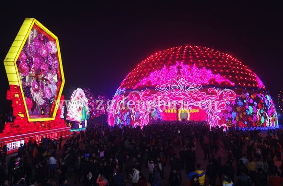 夢幻天穹燈景區(qū)的主特點是創(chuàng)新地將傳統(tǒng)彩燈工藝和新光源技術(shù)有機結(jié)合,運用高科技程控技術(shù)將現(xiàn)代光源的動感變化與音效節(jié)奏有機結(jié)合,360度環(huán)形藝術(shù)光雕圖案優(yōu)美、光影變幻,展現(xiàn)傳統(tǒng)與現(xiàn)代和諧統(tǒng)一的藝術(shù)魅力。